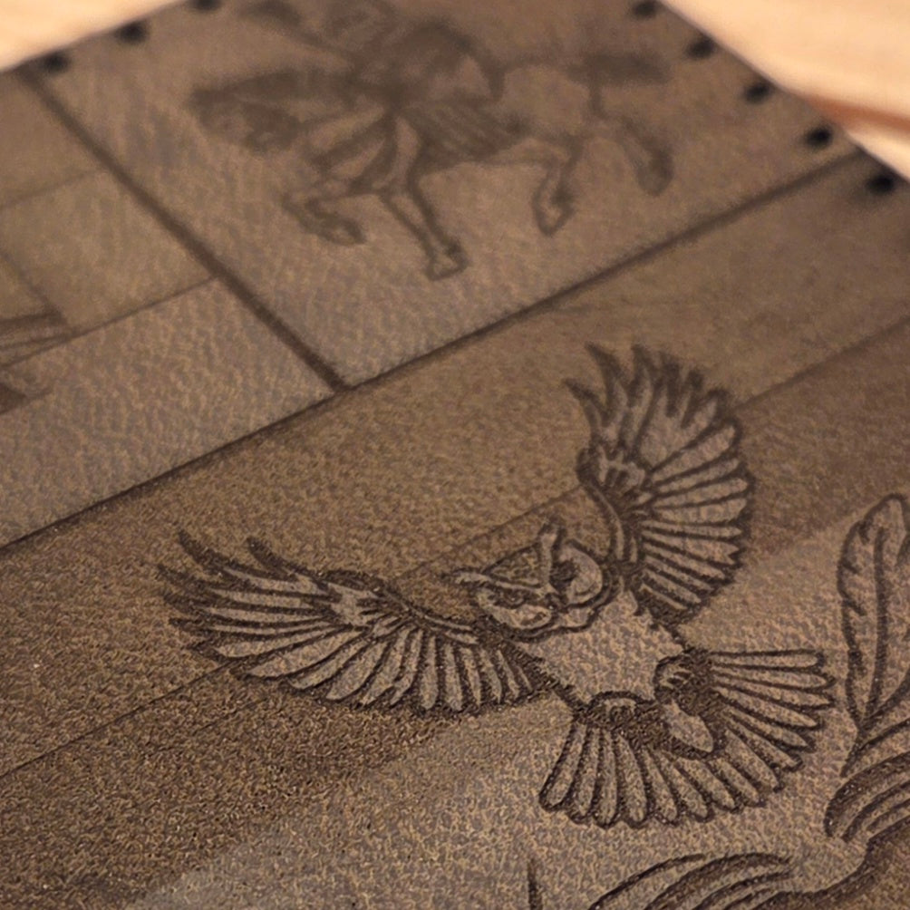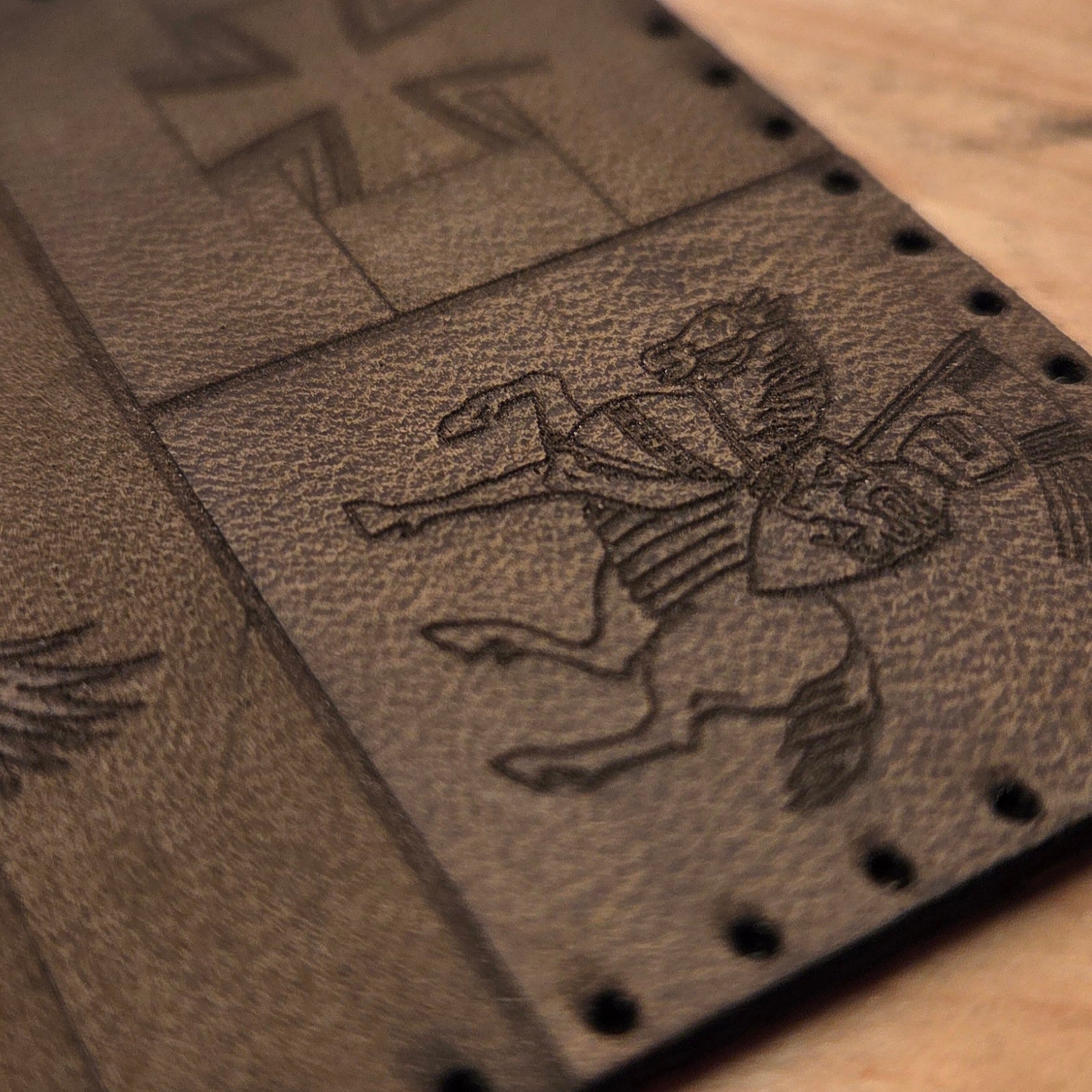 Die Gravur auf Leder ist nicht so kräftig und intensiv wie beispielsweise bei einem Druck oder einer Stickerei. Je nach Lichtverhältnis, Lichteinfall und Blickwinkel auf den Patch, zeigen sich immer neue Details. So sieht der Patch selten "gleich" aus, was ihn sehr interessant und besonders macht.